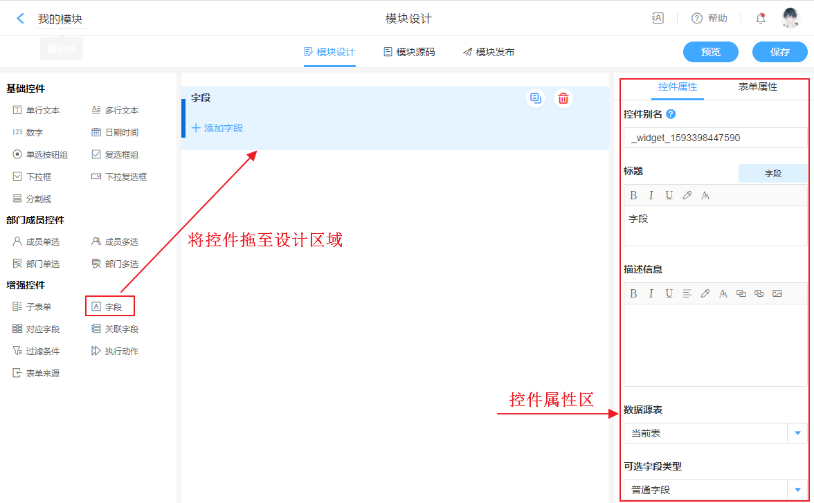 表单前端页面通过字段将需要传递的内容传递给模块代码,由模块代码决定返回哪些内容给界页面的哪些字段。