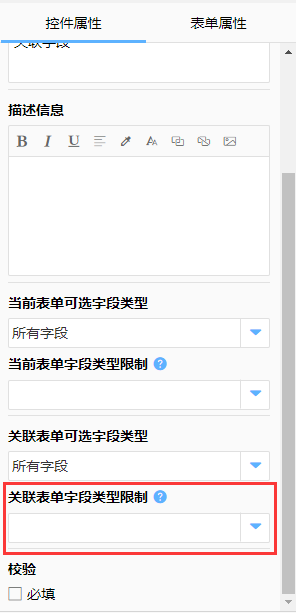 即限制关联表单中可以选择的字段类型,限制后,只能选择类型相符的字段。
