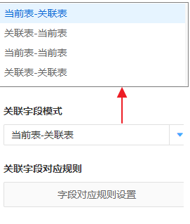 包含4种模式:当前表-关联表,关联表-当前表,当前表-当前表,关联表-关联表,根据不同模式可以方便的关联字段