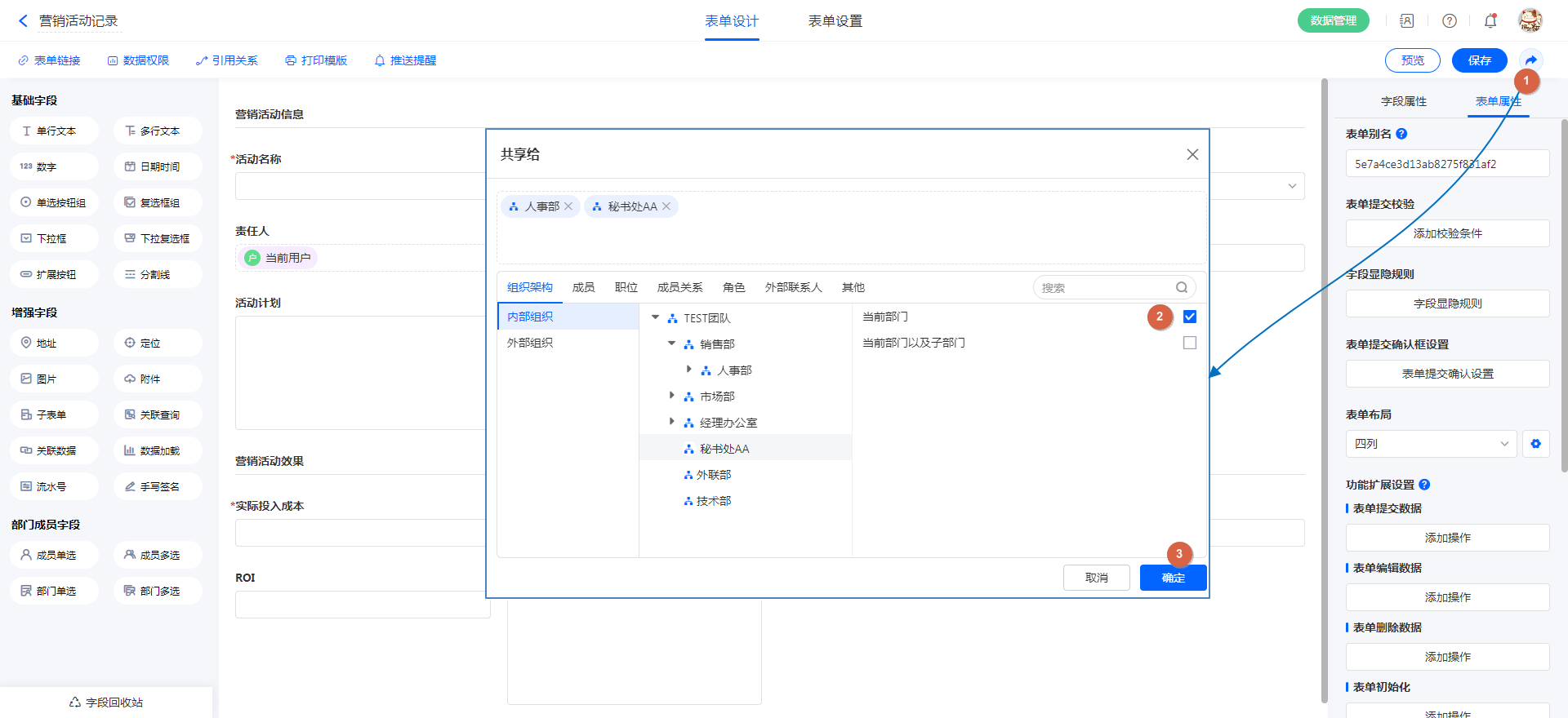 表单制作完毕之后,可以通过页面共享的方式将页面分享给团队内的成员。