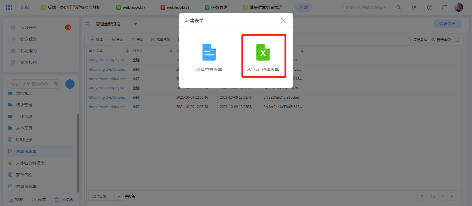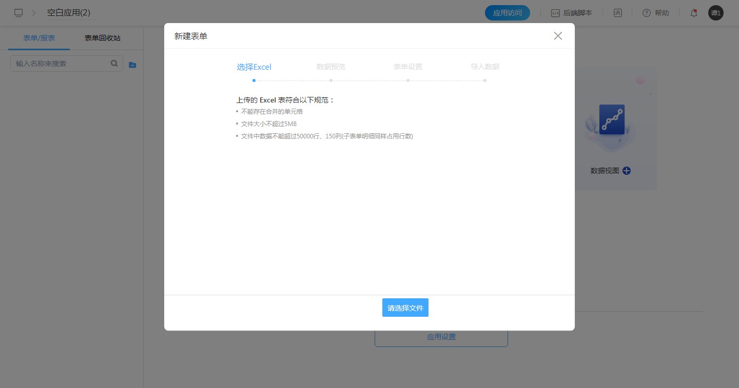 系统除了可以直接创建表单外,还可以导入本地excel文件创建表单。