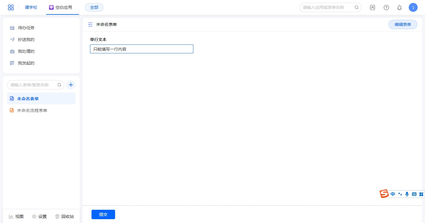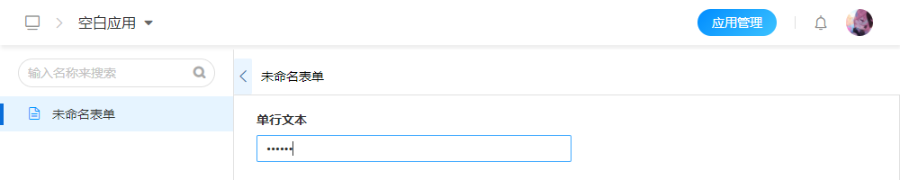 “单行文本”用于表单中填写文本类型的数据,只能填一行文本,不支持换行填写。