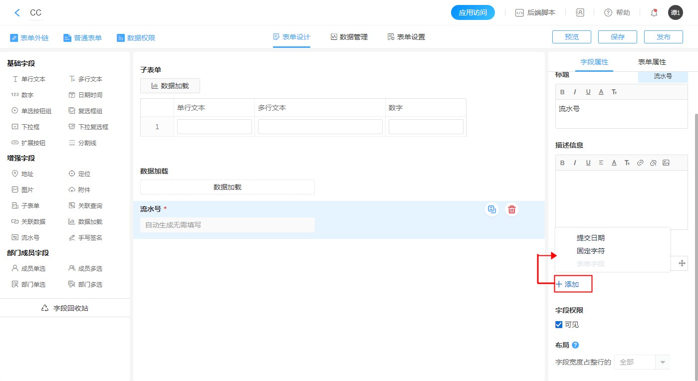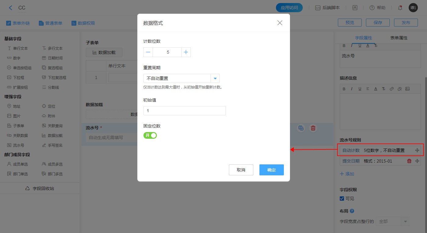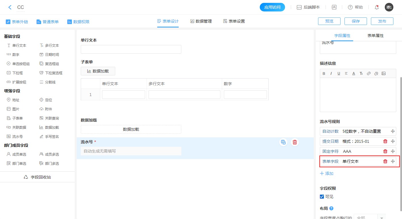 1. 每个表单只能添加一个流水号字段。
