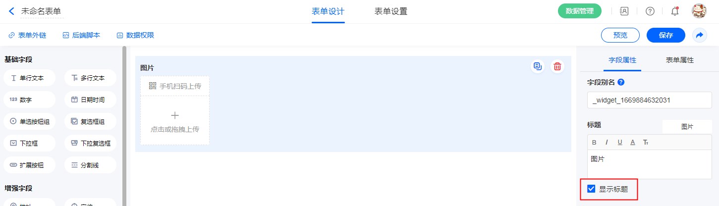 “标题”可以修改字段名称。