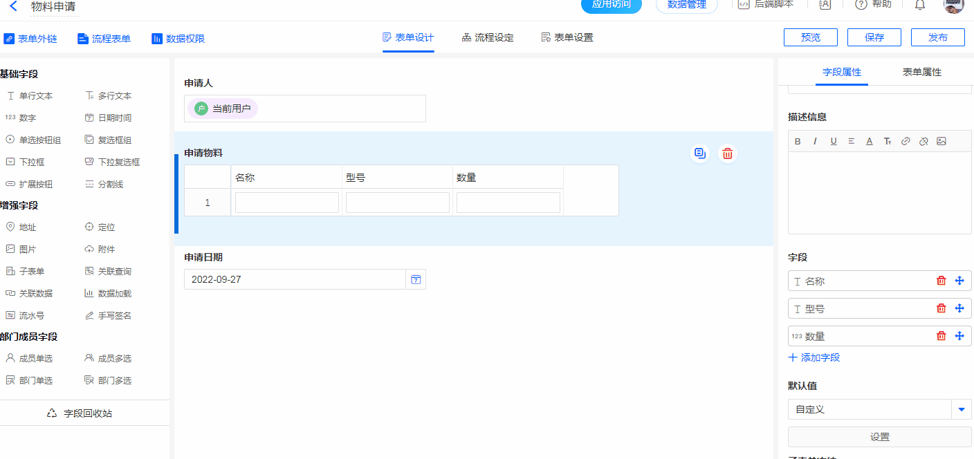 子表单主要应用于数据一对多的场景,应用子表单填写更加便捷。