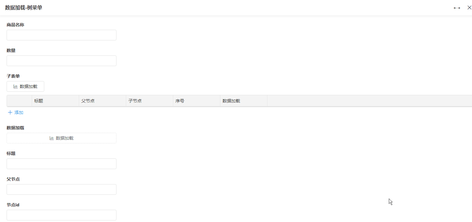 • 子表单行字段支持数据加载,单行加载的数据只会填充当前行