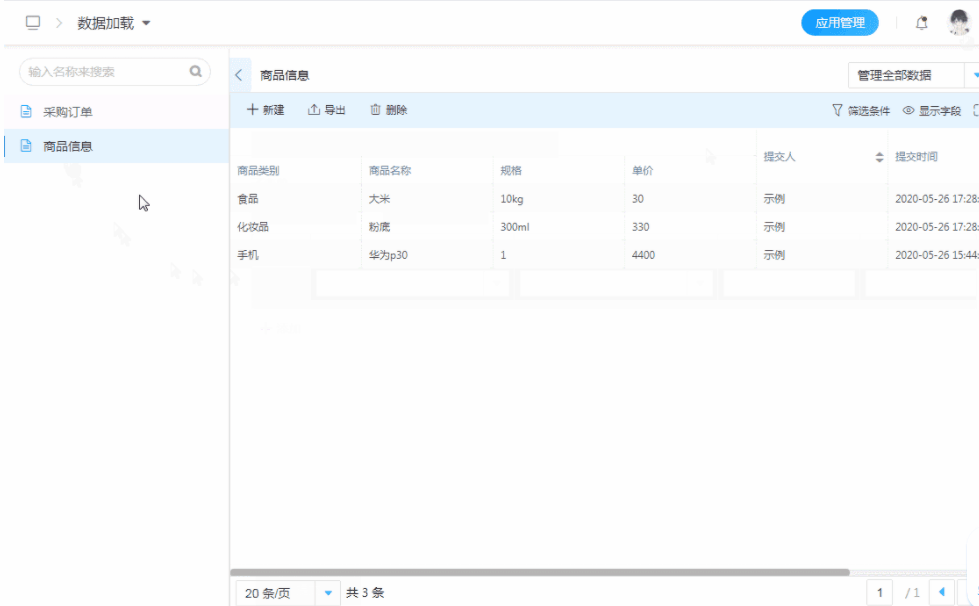 子表单数据加载可以将其他表单的数据提取到当前表单并填充到当前表单的子表单内,可用于加载商品信息,业务数据等场景。