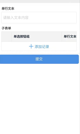 - 条数不一定:指在子表单录入数据时可以添加记录,而且添加的条数是不限制的。每一条添加记录即为一行子表单数据。