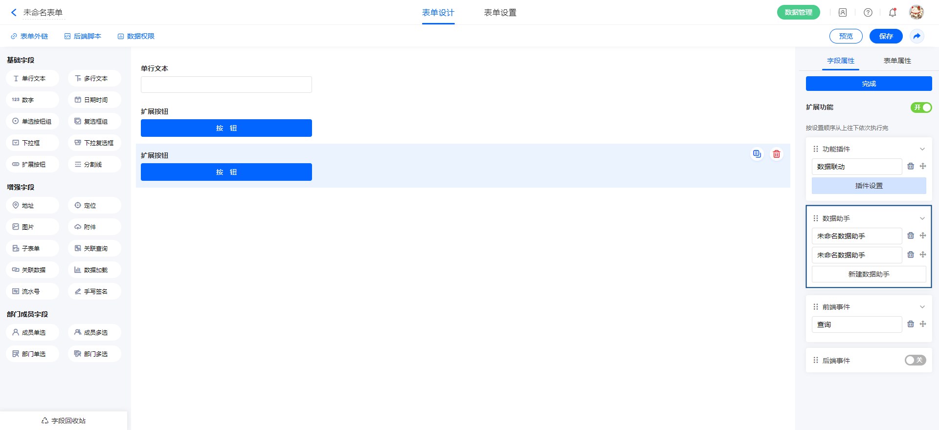 数据助手是扩展按钮基本功能之一,设置扩展按钮的属性为