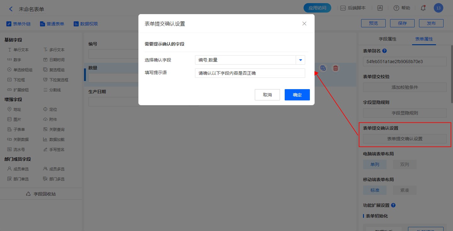 选择确认字段:从下拉复选框中选中需要确认的字段。