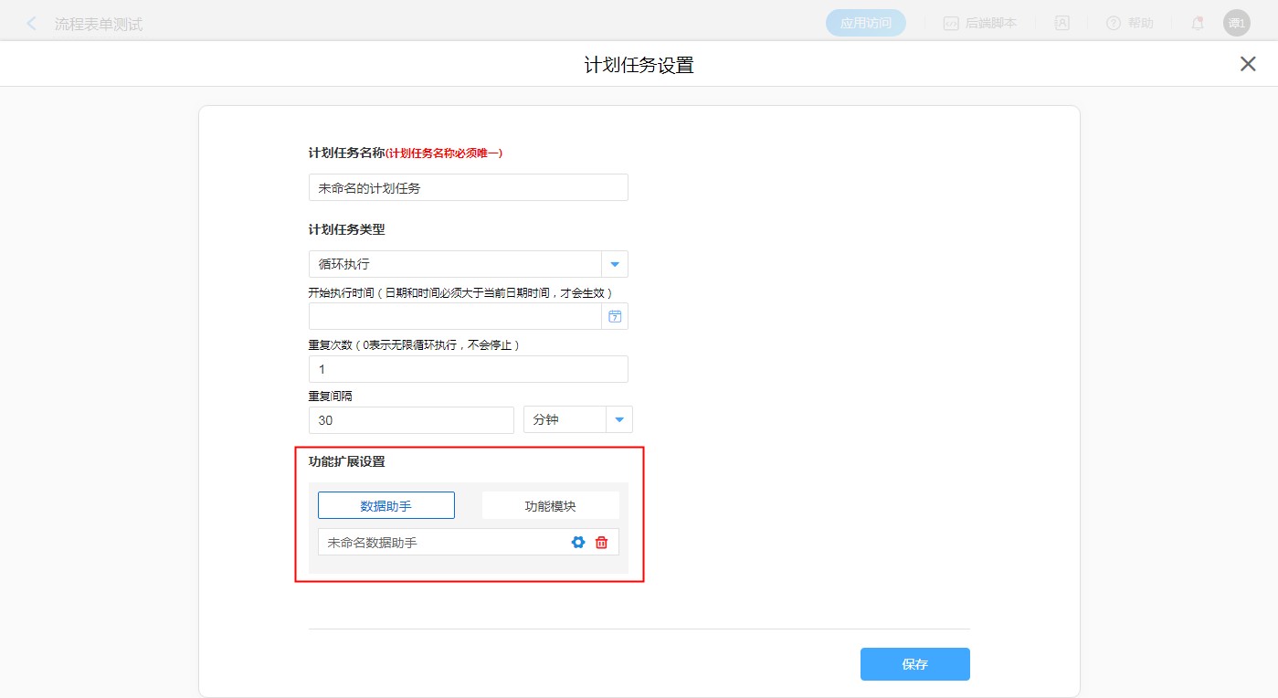 可以设置数据助手和功能插件(只能设置其一),设置完成后,会根据计划任务设置执行配置的数据助手或插件。