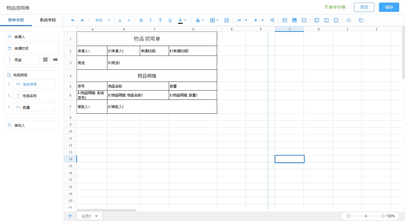 以表格样式为主,自行设定表格格式、样式,对数据内容设定布局来打印的模板。