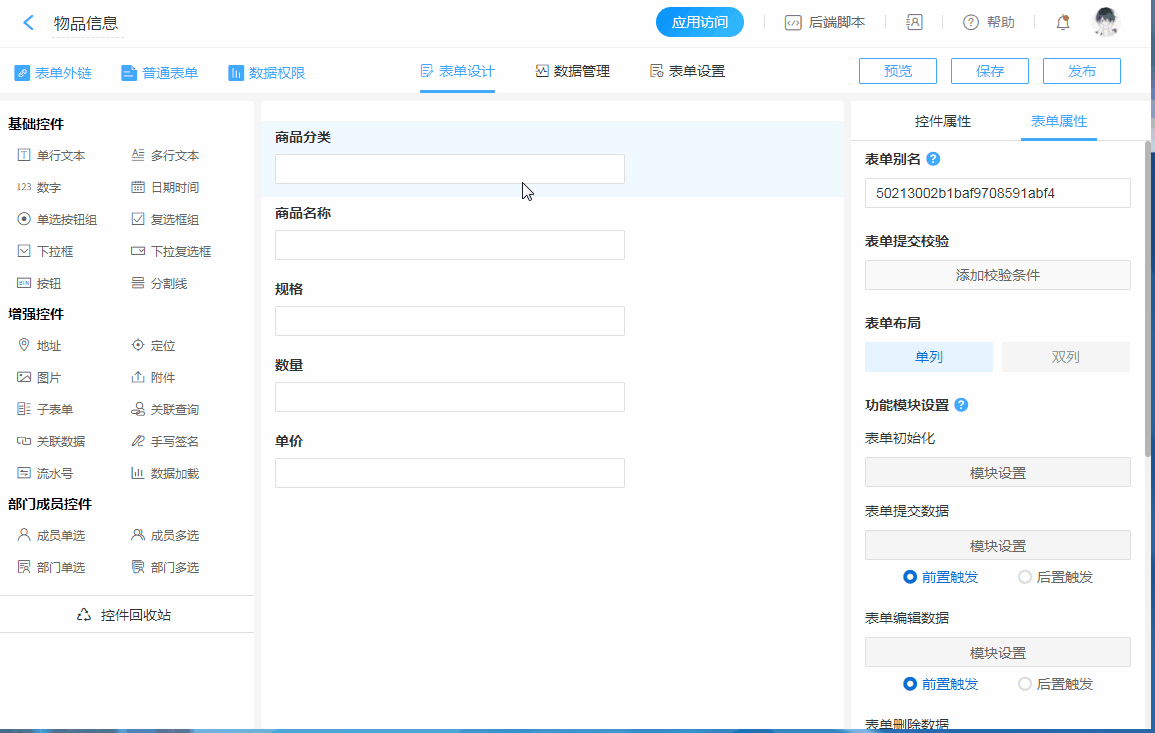• 表单外链-显示内容-打印模板设置,可以配置公开查询外链专属打印模板。