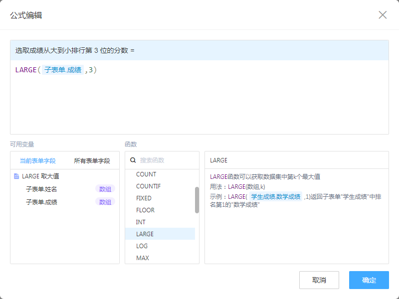 一般用于子表单中,判断哪一行数值排行最大。