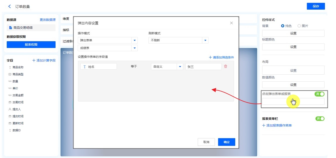 • 点击弹出表单或报表