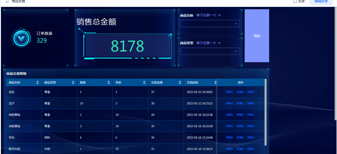 平台的报表体系,支持报表菜单,在报表的表头上方,支持添加自定义按钮,可对接功能插件、后端、数据助手或者弹出表单、报表。