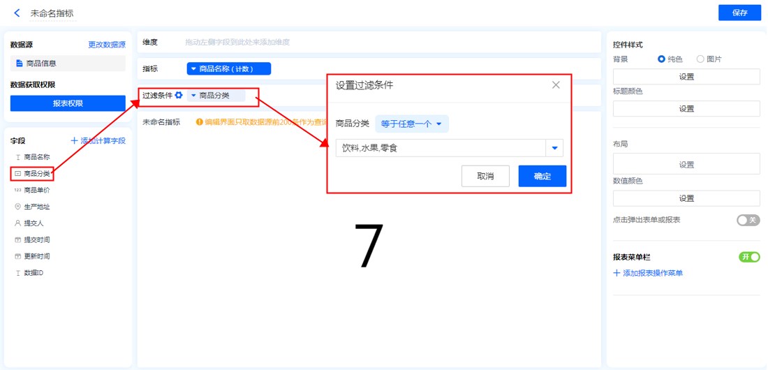 可以将指标中显示的数据,通过对过滤条件进行设置,只显示符合条件的数据。