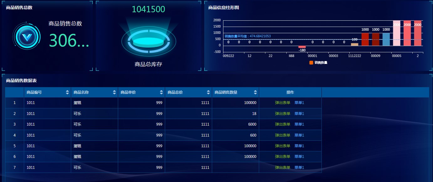 开启并设置后,点击指标数值或者图形区域可以弹出已设置的表单或报表。