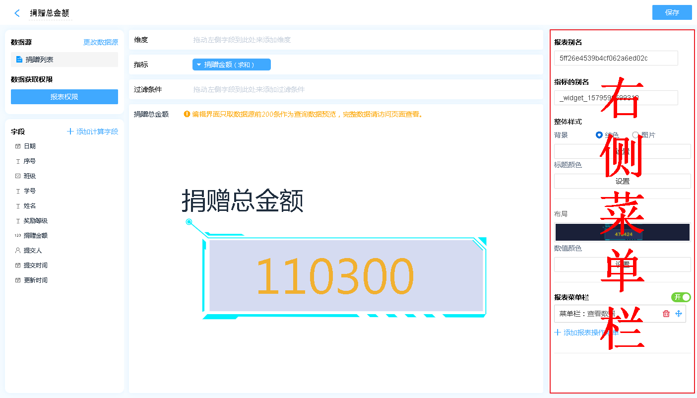 数据源就是指当前指标的数据来源,可以是表单、数据视图。