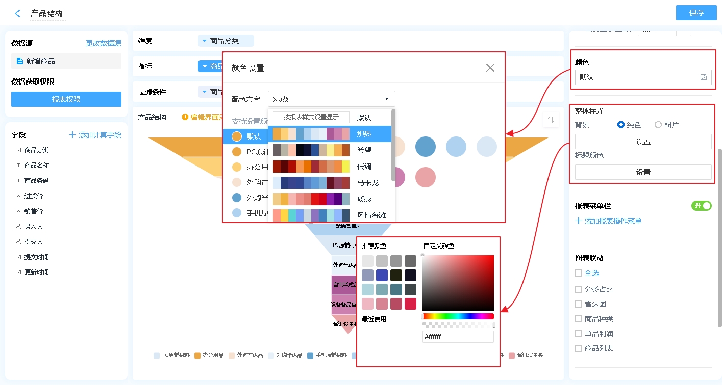 整体报表的风格,主要设置背景颜色/图片、标题颜色