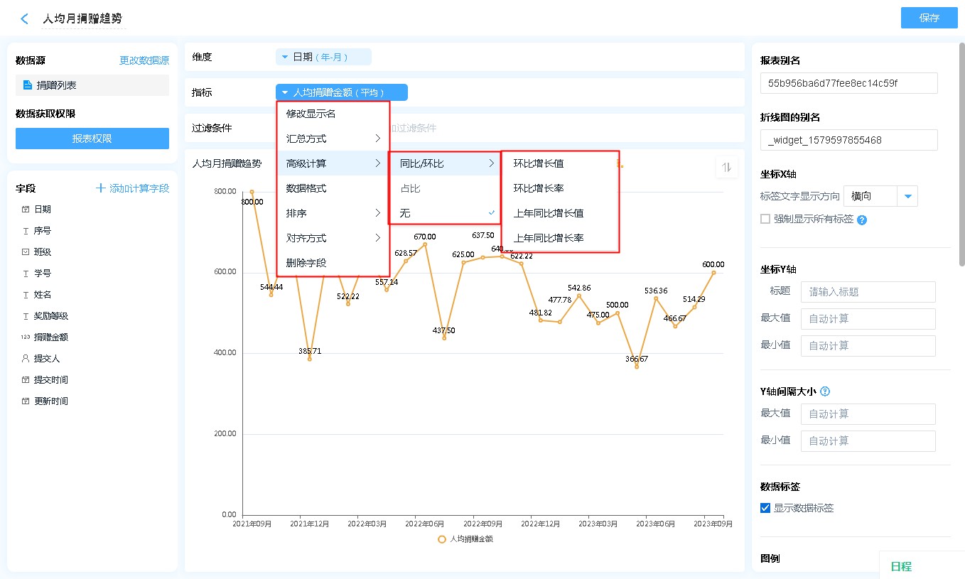 • 高级计算:高级计算可进行同环比、占比的计算,详见同环比和占比。