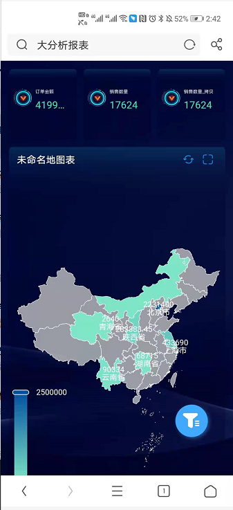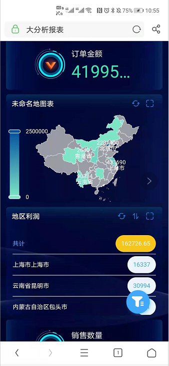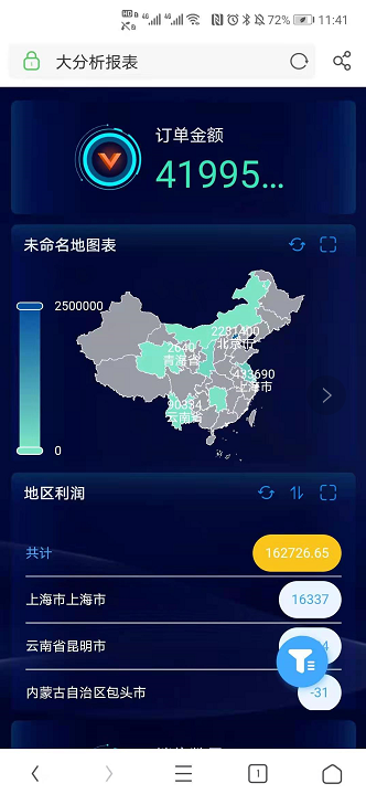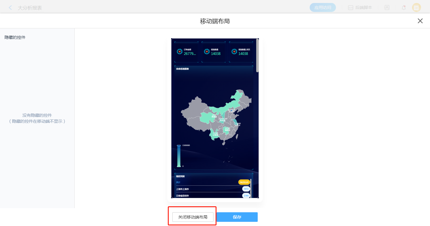 隐藏控件后,移动端【未命名地控件】和【地区利润】未展示,展示效果如下图所示: