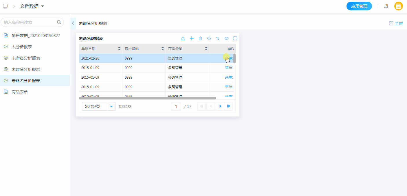 数据表支持设置数据表菜单栏,通过数据表菜单栏的扩展,在报表浏览时,可针对单条数据做出对应的操作。
