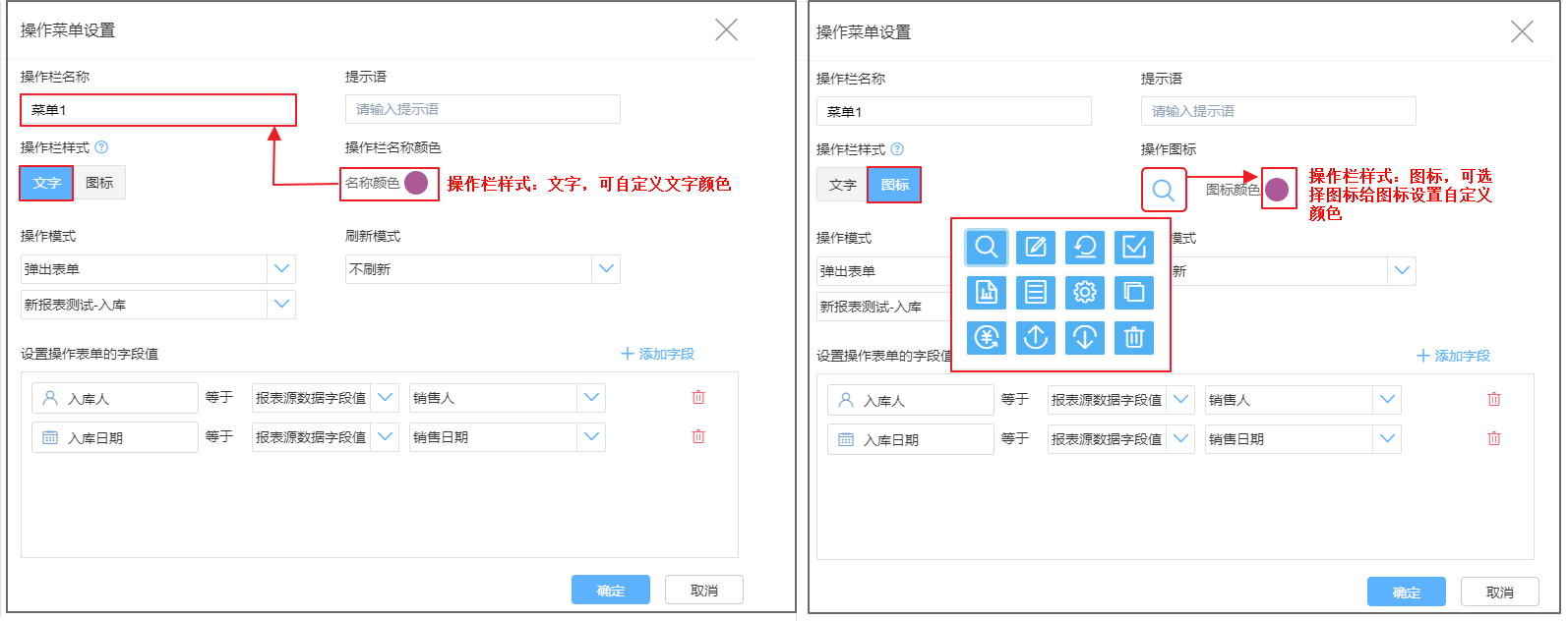 操作图标:当操作栏样式为图标时,可以设置图标样式和图标的颜色。