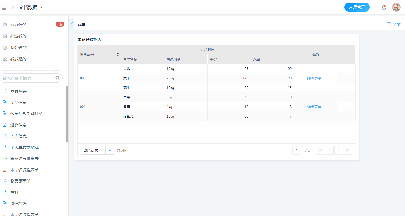 弹出表单一般用于数据的新增,只需点击操作按钮即可弹出对应的表单以供数据录入。