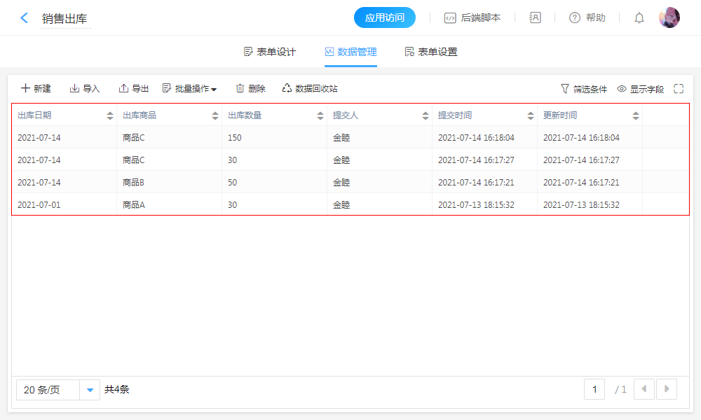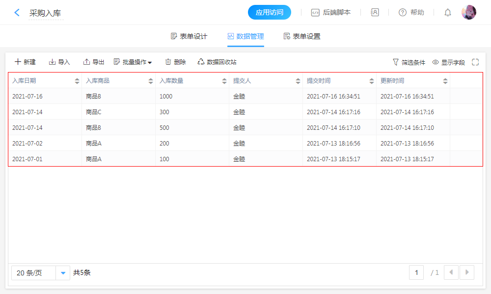 • 应用内表单管理