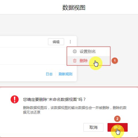 - 编辑可以对创建好的数据视图进行首次设计或二次修改。