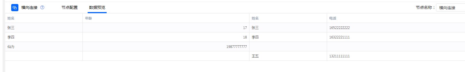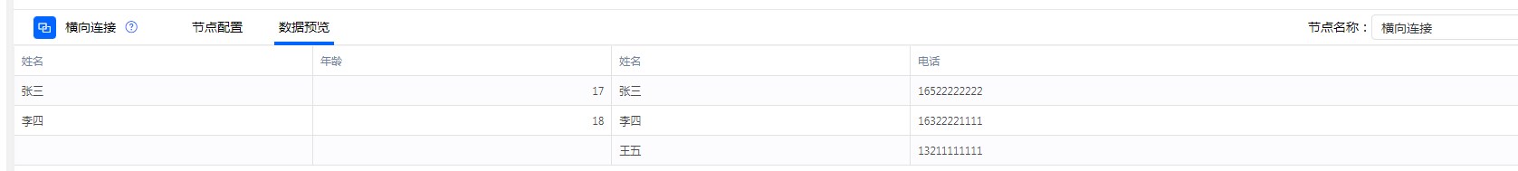 全连接:根据“连接字段”为条件匹配“表单A”与“表单B”,将两边表单数据全部展示。