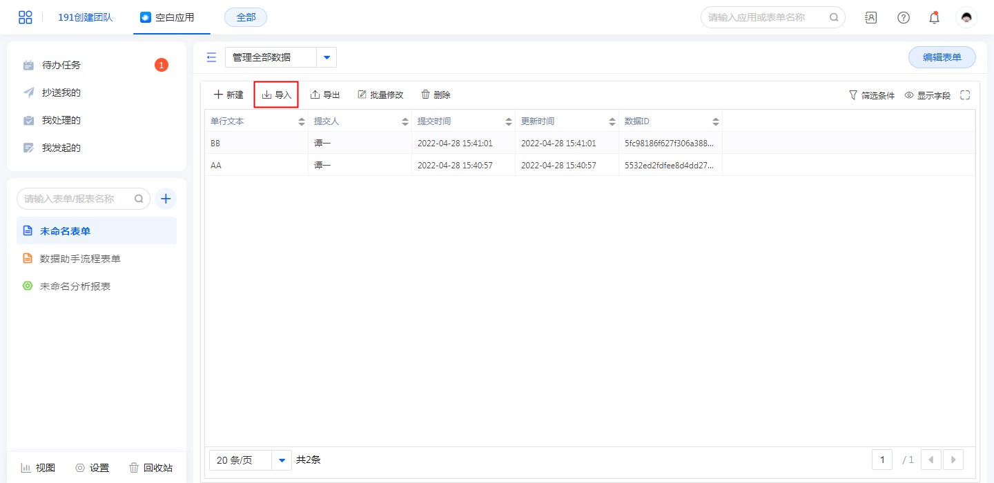 在“数据管理”页面,进行导入操作,即可触发所配置的数据助手。