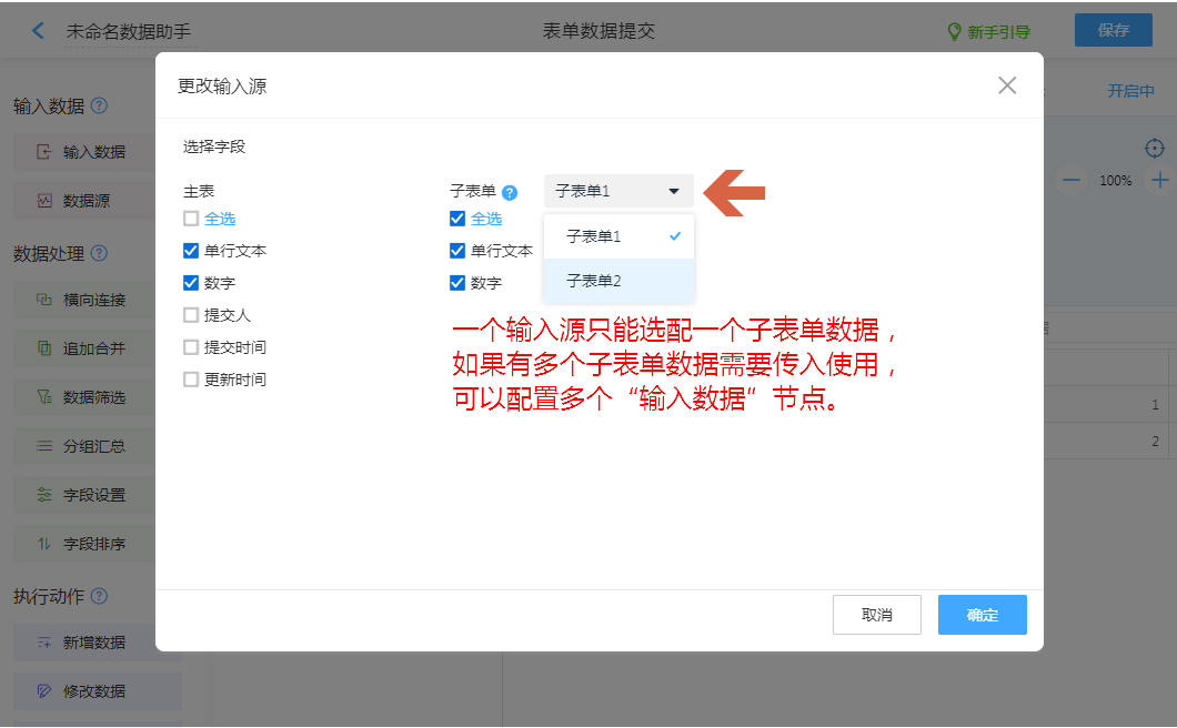 • 数据助手子表单