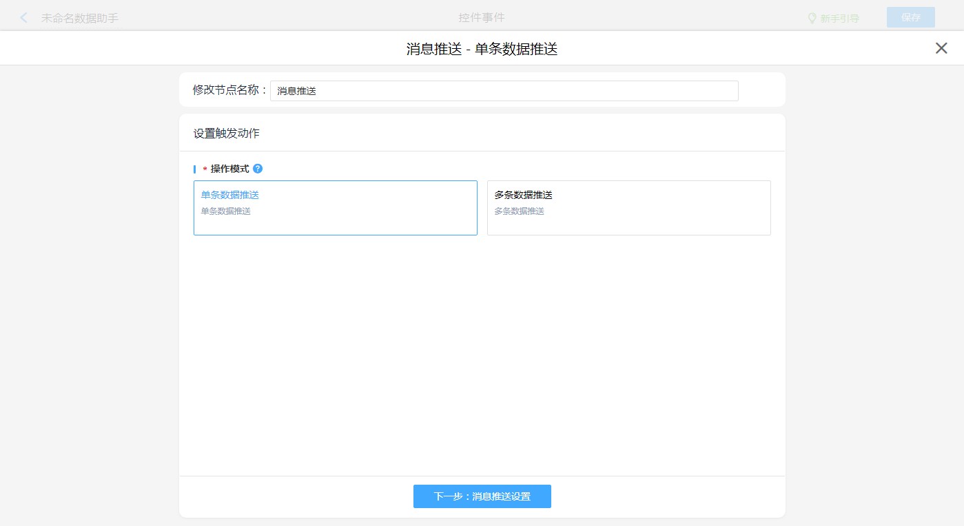 操作模式可选择“单挑数据推送”、“多条数据推送”。