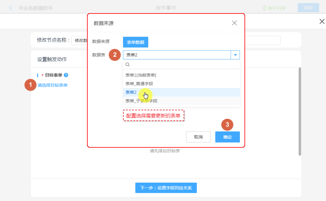②、设置主表更新字段。