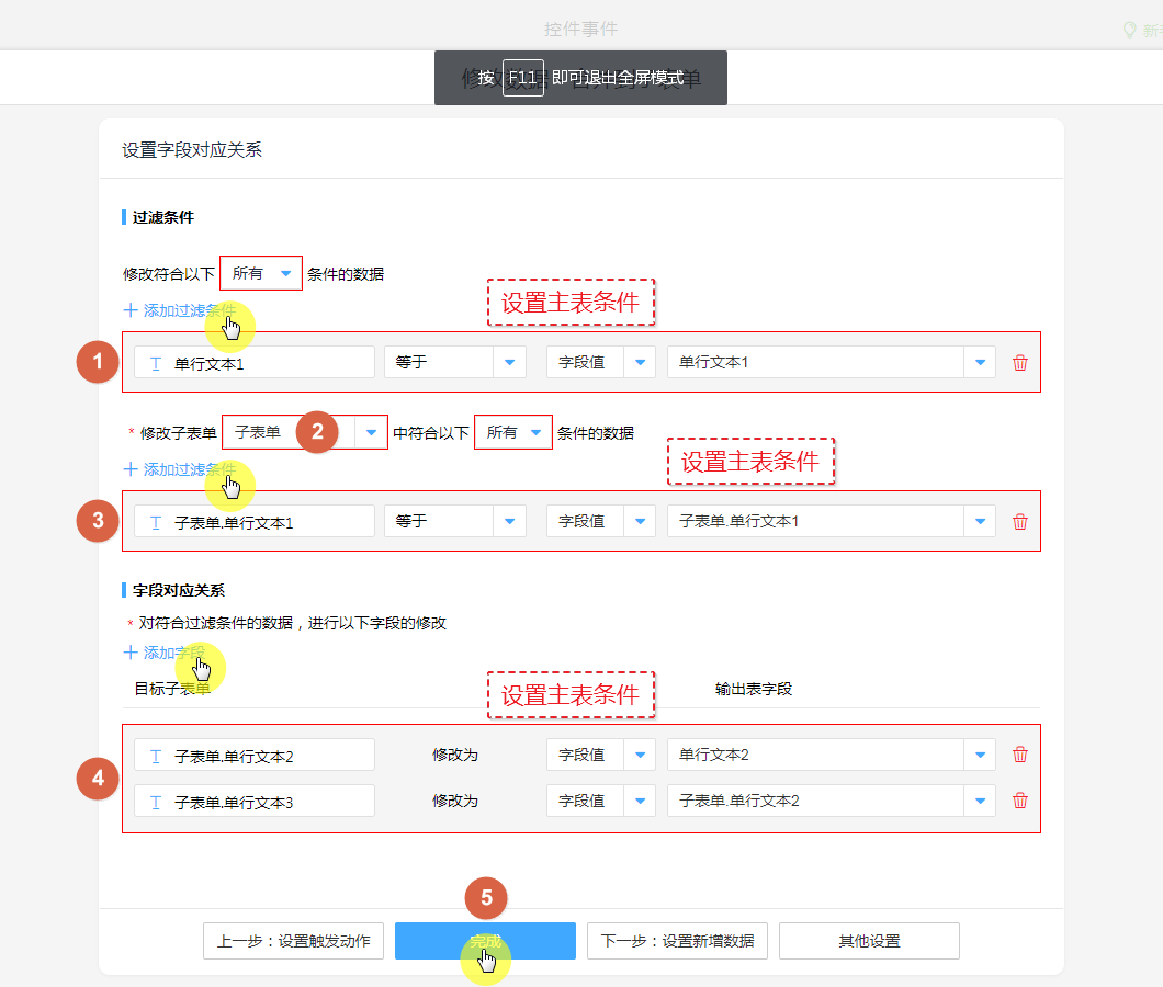 ③、设置子表单条件。